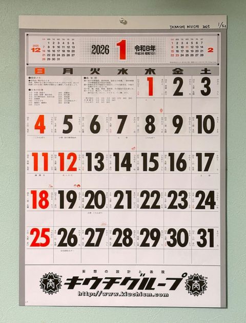 木内貴志「キウチグループ特製カレンダー2026年版」(送料込)